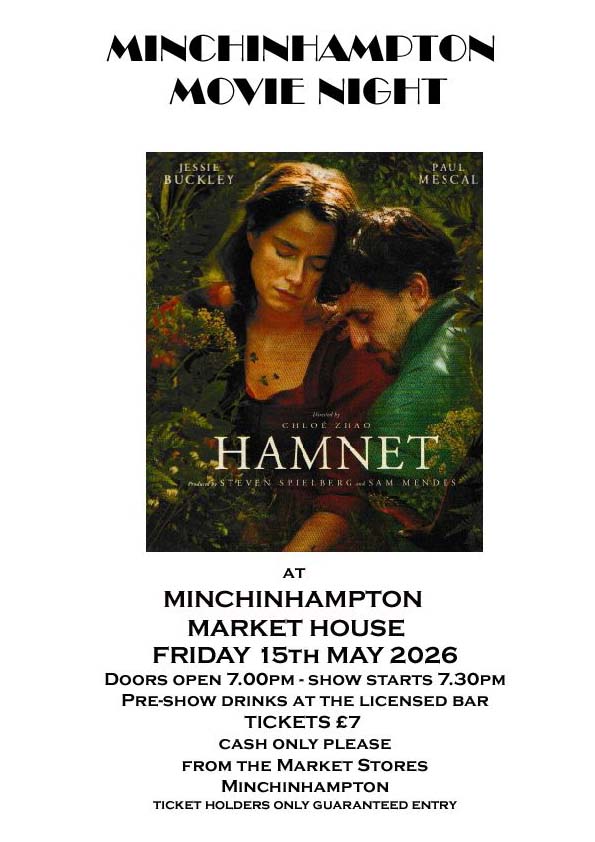 The next movie at the Market House, is the Oscar winning film 'Hamnet'. Based on the best-selling novel, this is a powerful story of love and loss. William Shakespeare is an aspiring playwright, leaving his wife and three children in an attempt to establish himself in London's Theatre community. He becomes a success, but at… Read More »Minchinhampton Film Night – “Hamnet”